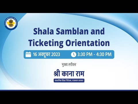 Shala Samblan & Ticketing Orientation | 16 October 2023 | 3:30 PM TO 4:30 PM - मुख्य वक्ता - श्री काना राम ,माध्यमिक शिक्षा निदेशक ,राजस्थान सरकार .